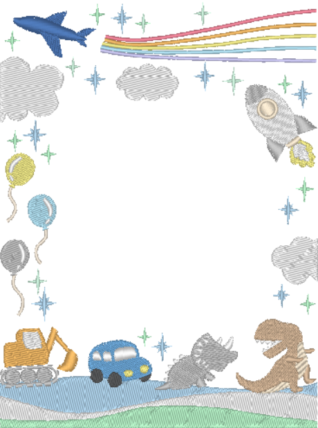 ショベルカー、恐竜たち、車、ロケット、男の子の大好き詰め込みデザインです✨