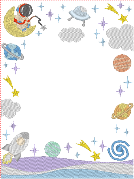 月の上でお星さまを釣ろうとしている宇宙飛行士🧑🏻‍🚀金色の流れ星、沢山の惑星を詰め込んで、男の子の大好きなデザインでまとめました🌎