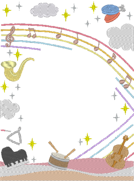 音楽デザインは、虹の五線譜が空デザインの飛行機雲と繋がるんです!!🌈