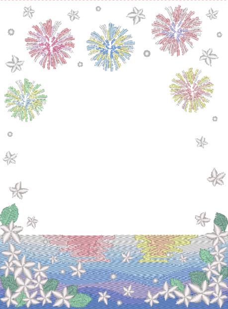 大輪の花火を刺繍した大人っぽいデザインです♪何色もの色を重ねて刺繍した花火は本物のようです✨