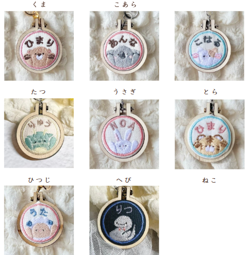 • 幅2.5cmの布にお名前を刺繍、簡単なモチーフをデザインできるキーホルダーです