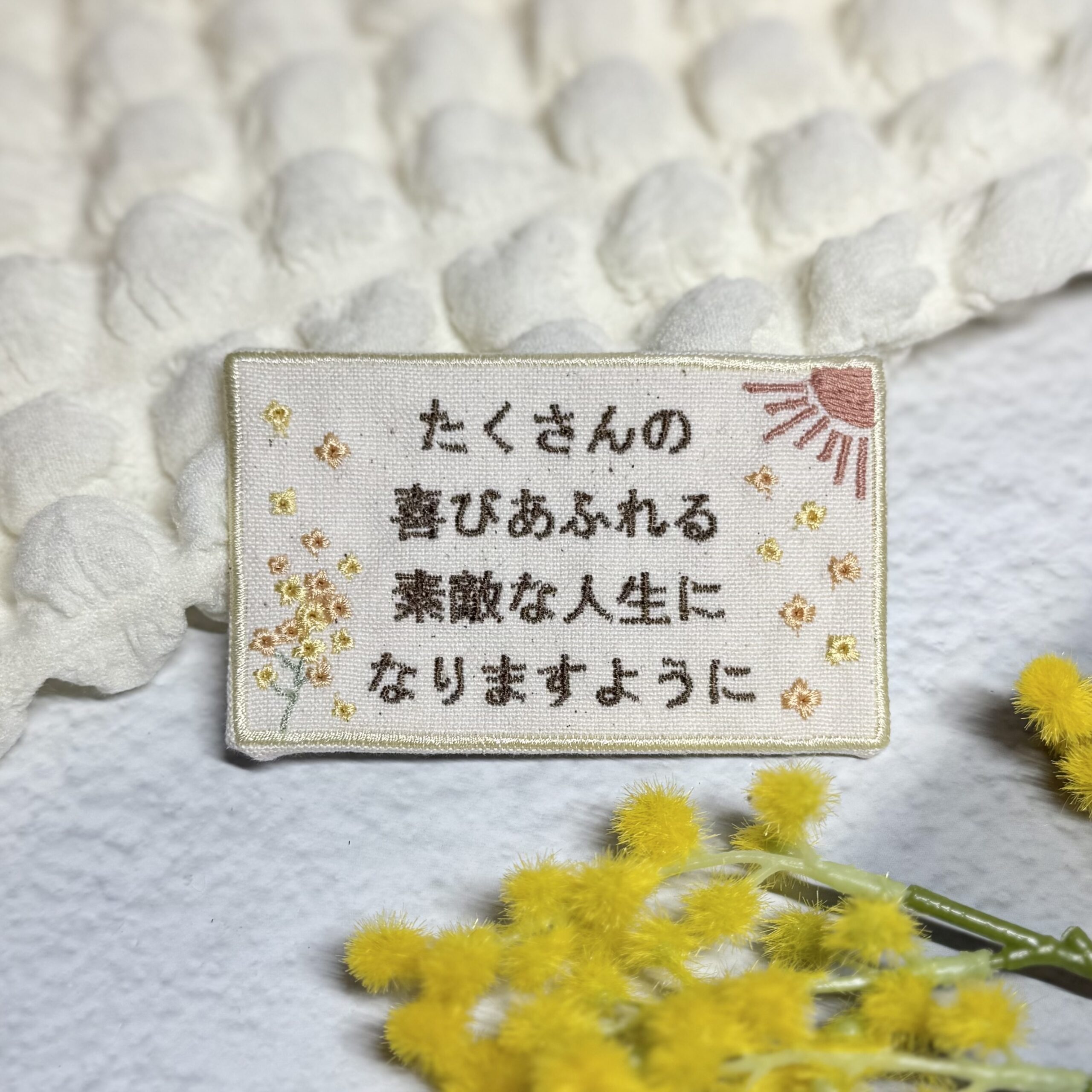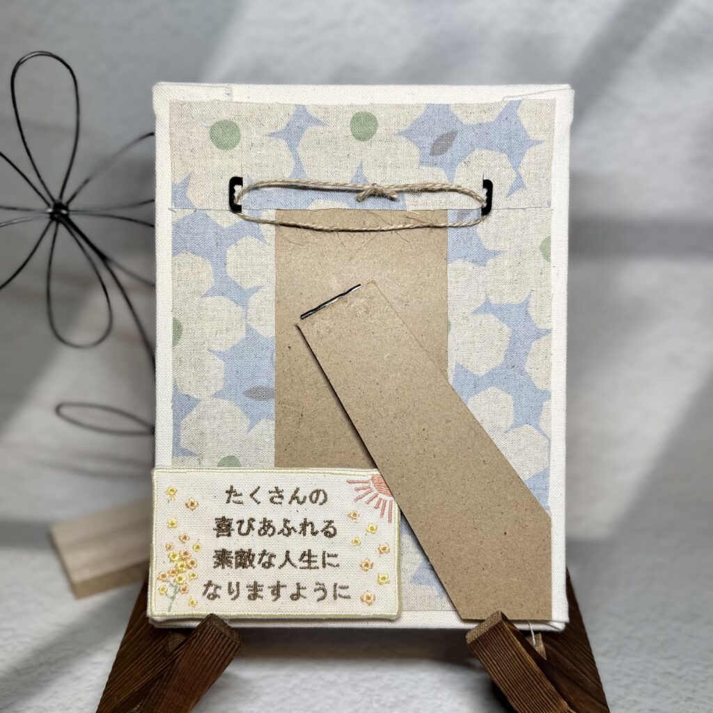 由来刺繍布《太陽・菜の花》 2025.11.182025.11.20 きひろくん、素敵なオーダーありがとうございました♪ 目次 写真オーダー内容と、使用した糸色は? 写真 オーダー内容と、使用した糸色は? きひろくん 布色:生成線:黄色010番キラキラ文字:茶色736番マット菜の花:黄色183番キラキラ、オレンジ334番キラキラ、黄緑42番キラキラ太陽:オレンジ238番マット