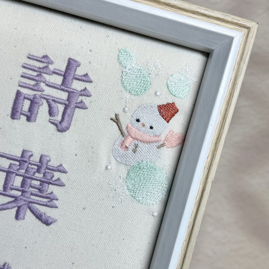 オリジナル命名書複雑デザイン《ホワホワ雪だるまと椿の花》