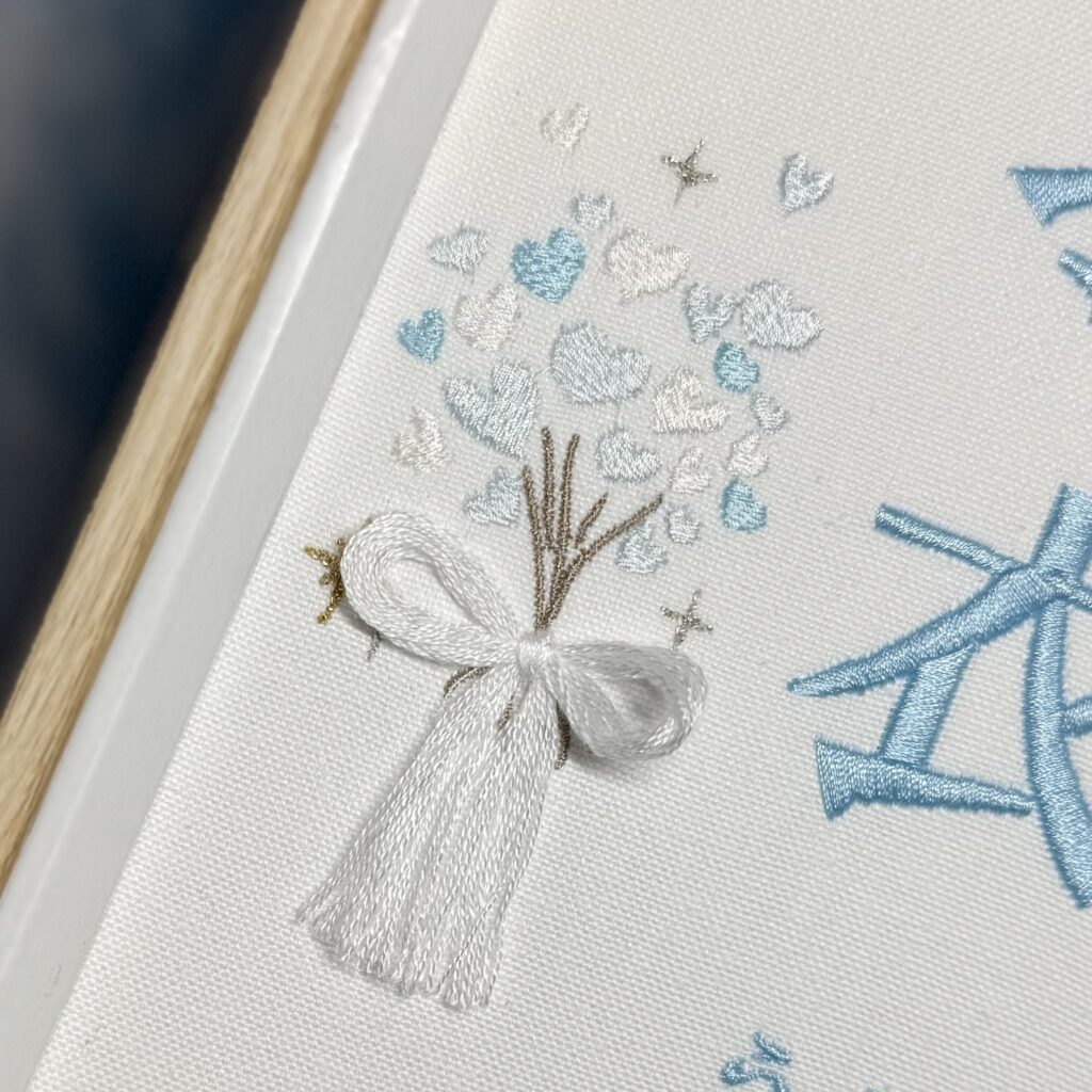 - ハート:白、水色206番.68番、ベージュ256番(キラキラ糸)