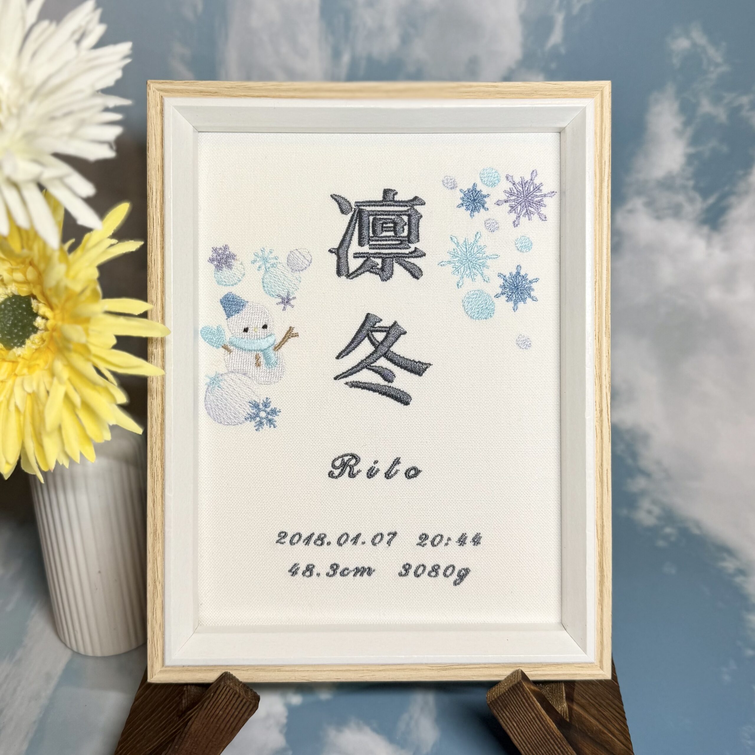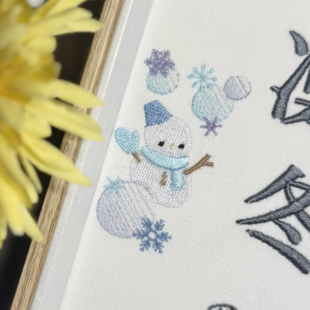 • 左下に雪だるまと雪の結晶、右上に雪の結晶