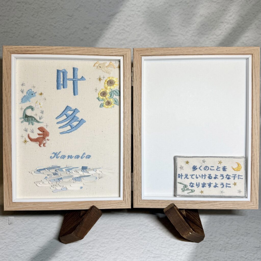 - デザイン:右上にひまわり、左下に恐竜でおまかせ