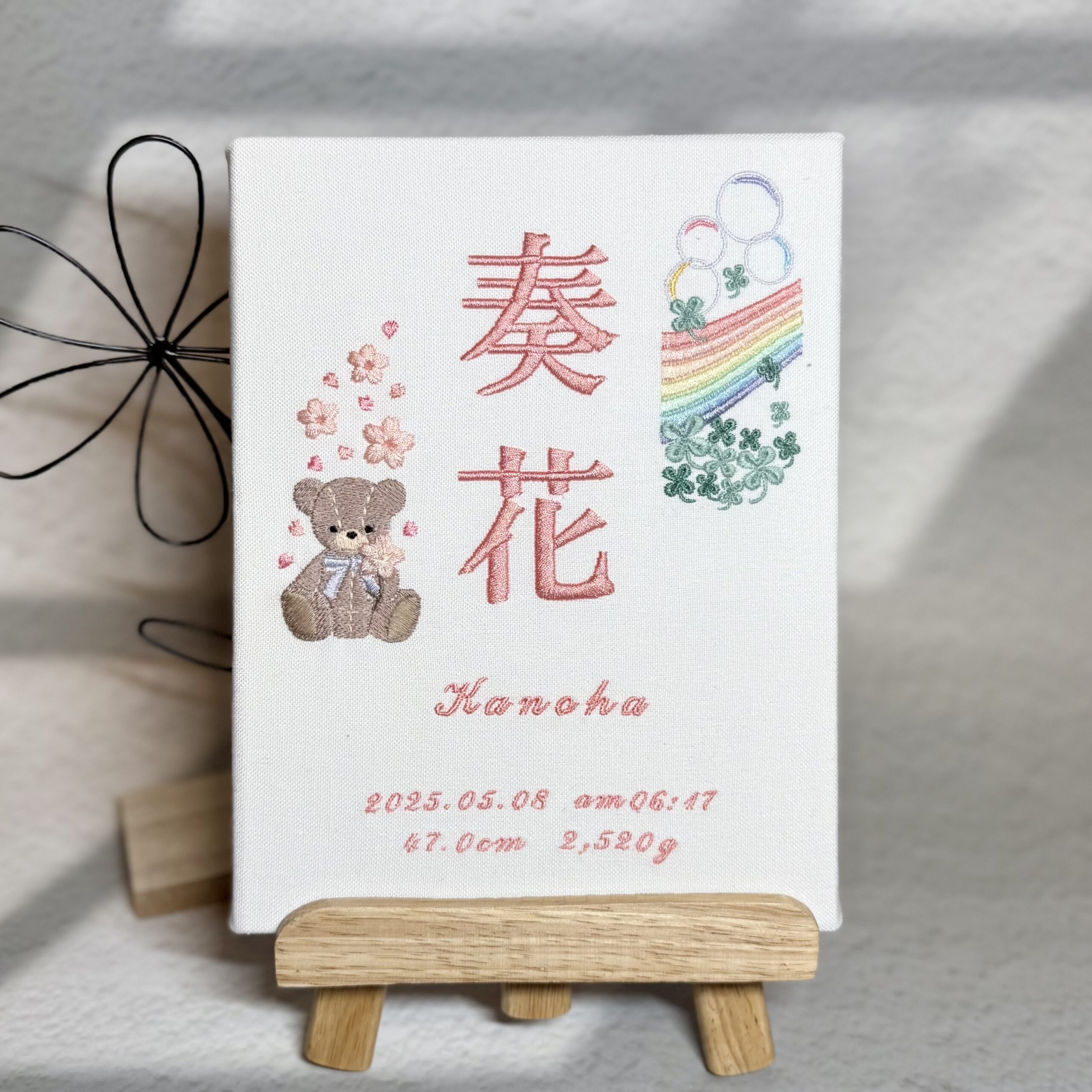 セミオーダー命名書《桜とテディベアと虹》