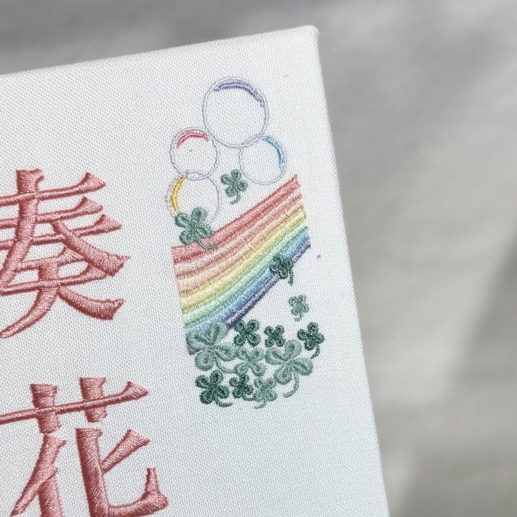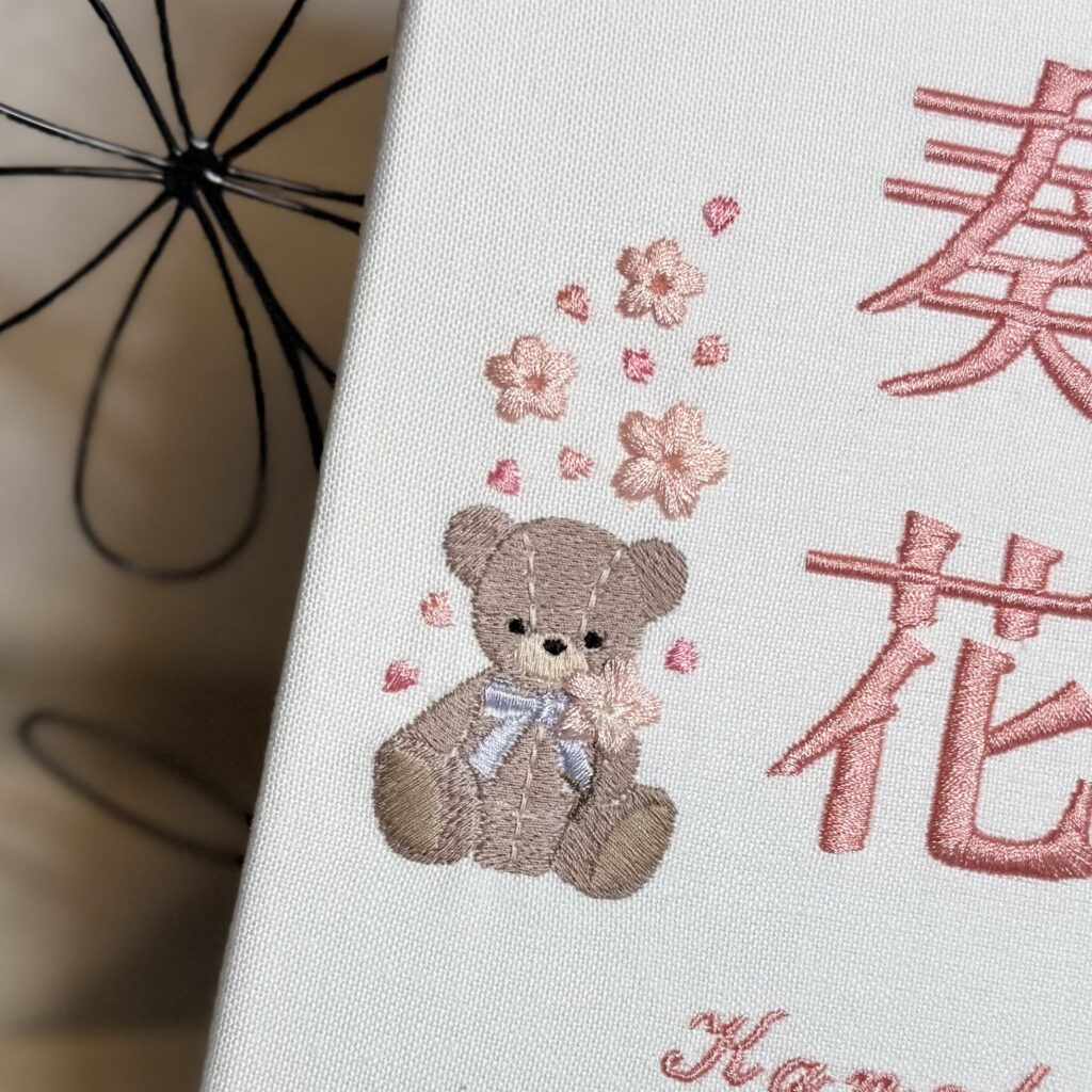 • デザイン:右上に虹、左下にテディベアと桜