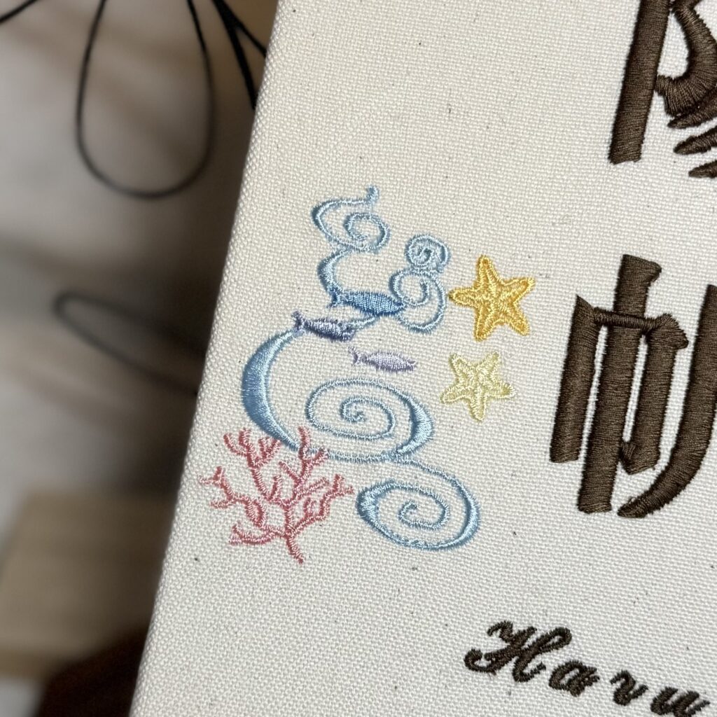 - デザイン:右上に海とヨット、左下に神秘的な海