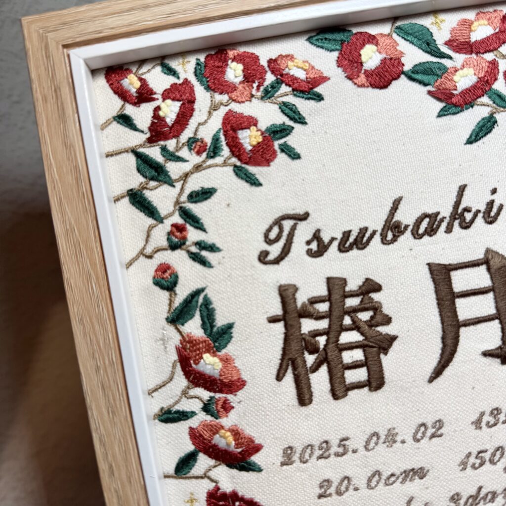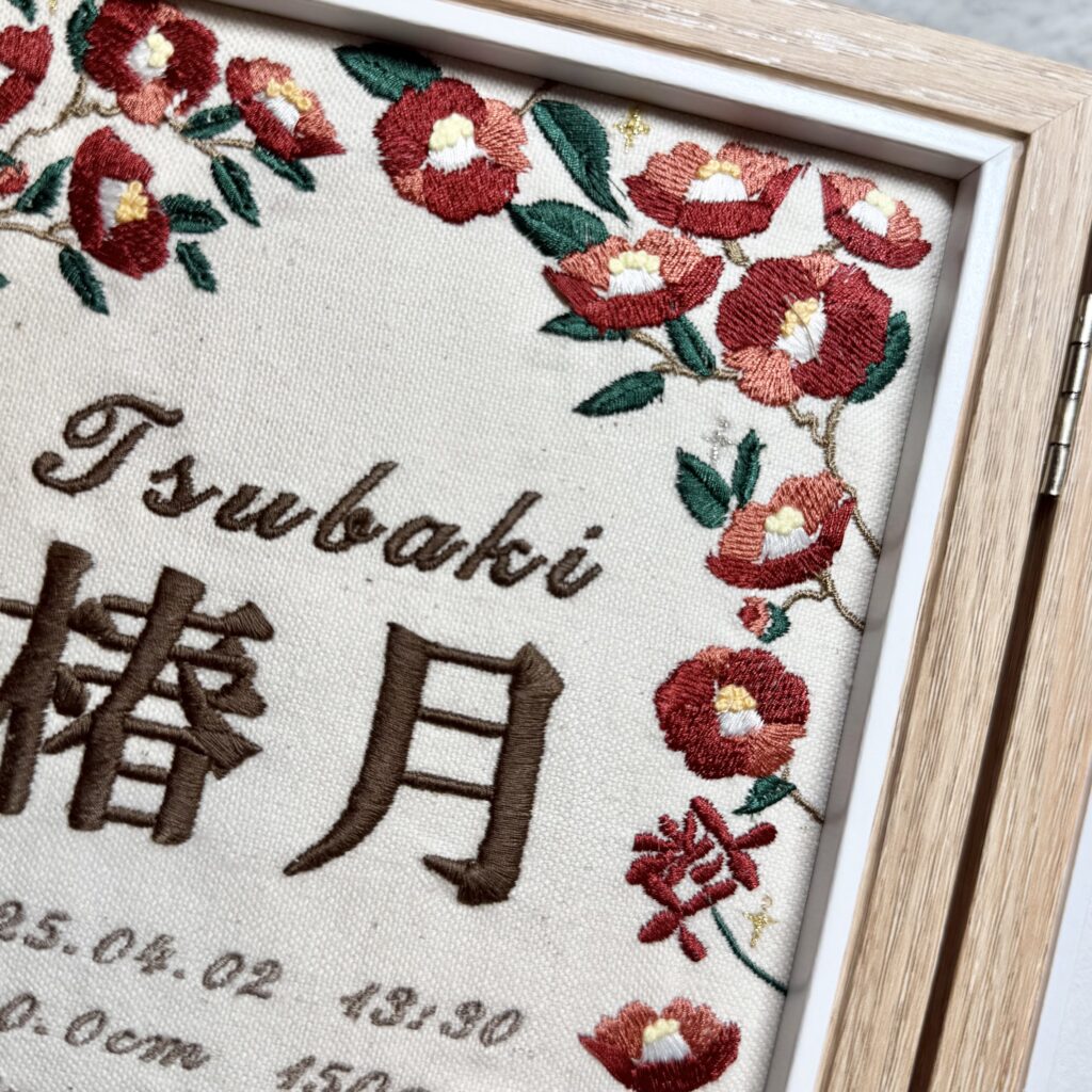 デザイン自由な命名書背面刺繍《一面に椿をデザイン》
