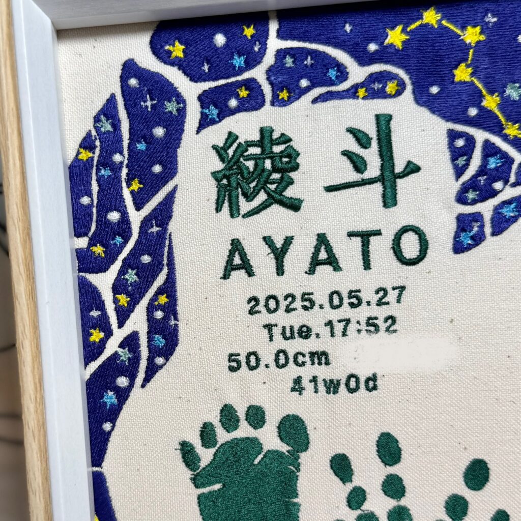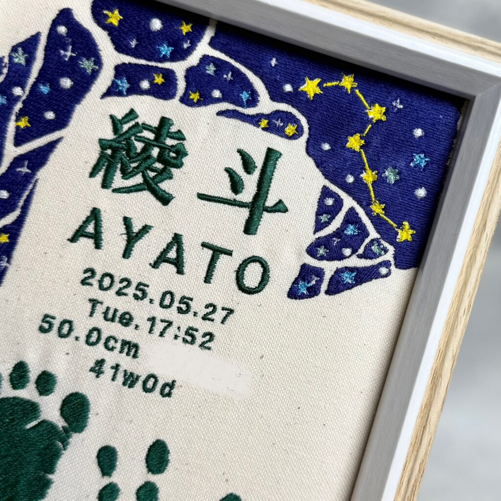 - メニュー:デザイン自由な命名書 背面刺繍