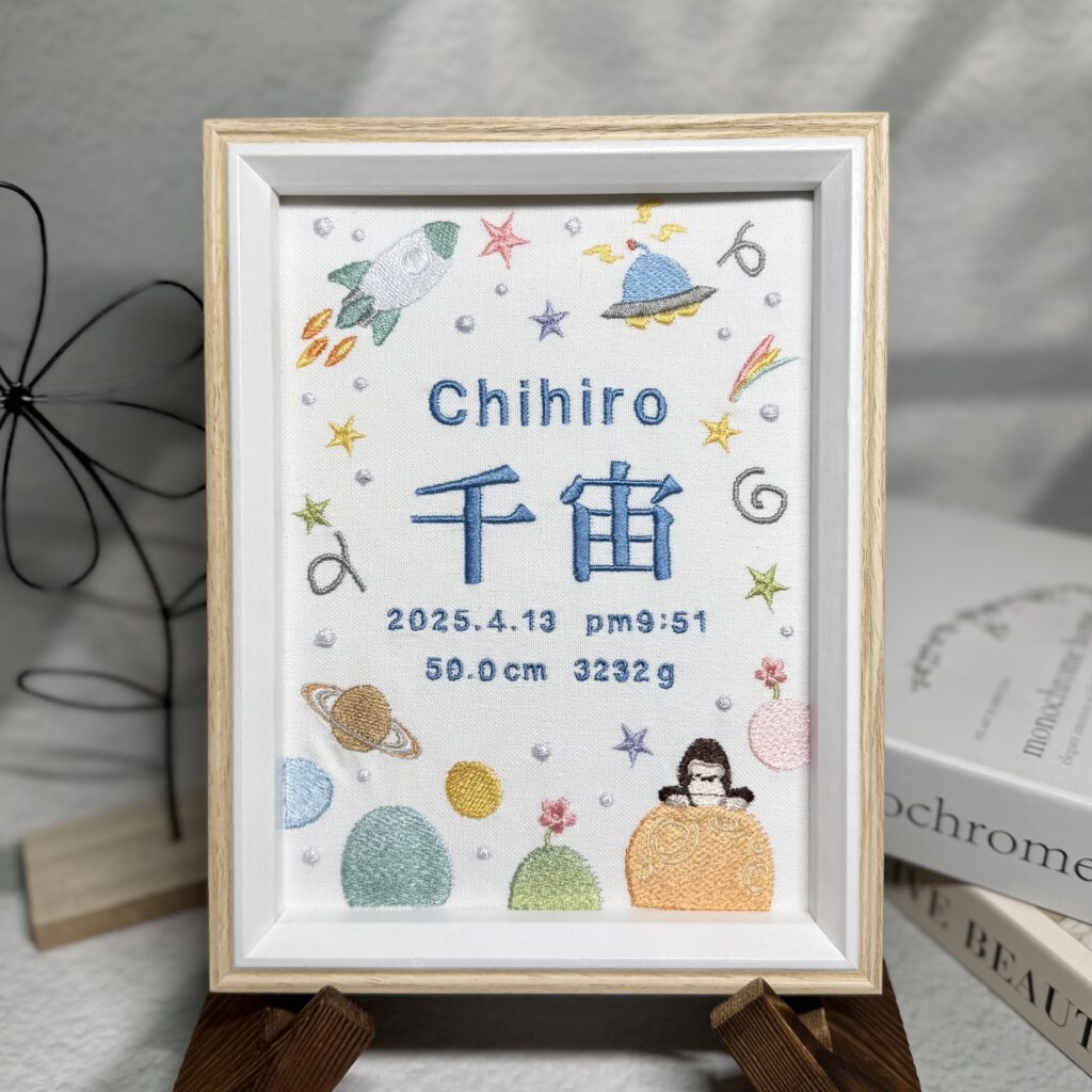 - メニュー:デザイン自由な命名書(背面刺繍)