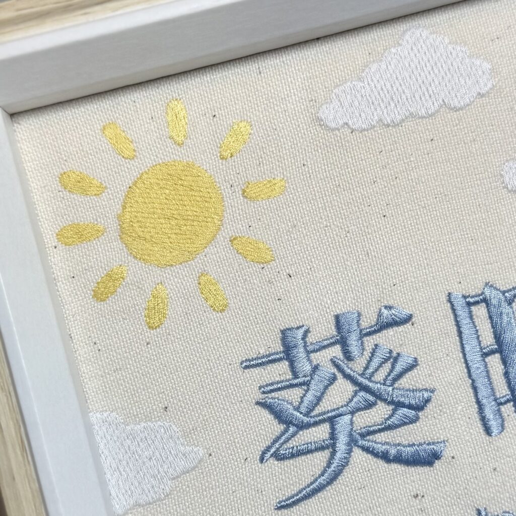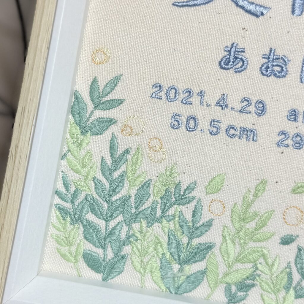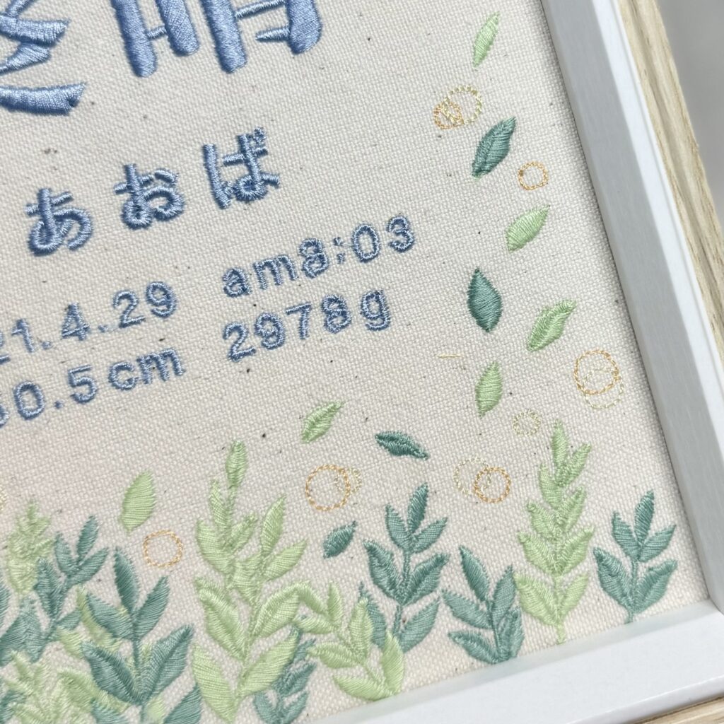 デザイン自由な命名書背面刺繍《青空と温かい新緑》