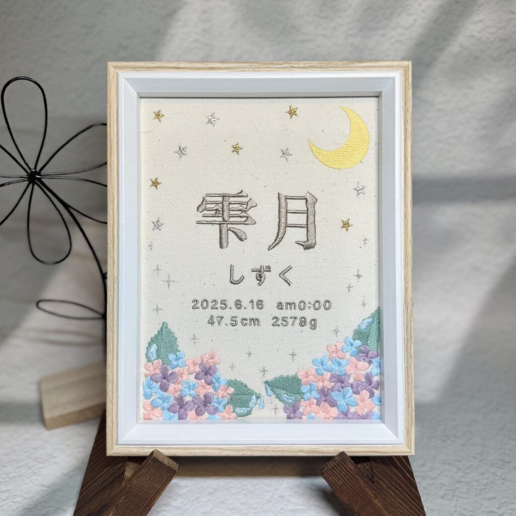 - デザイン:上部に月と星、下部に紫陽花と雨上がりのキラキラした雰囲気