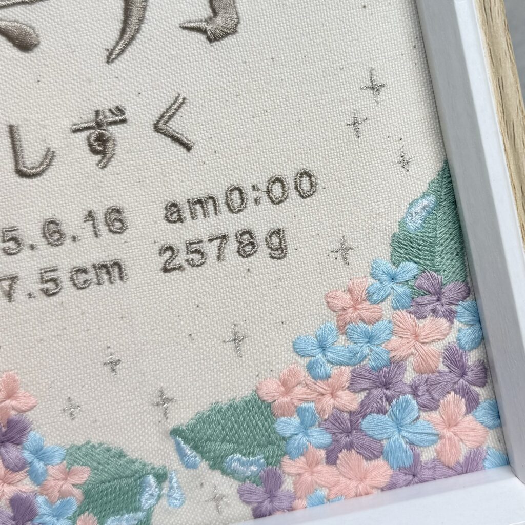 - メニュー:デザイン自由な命名書(背面刺繍)