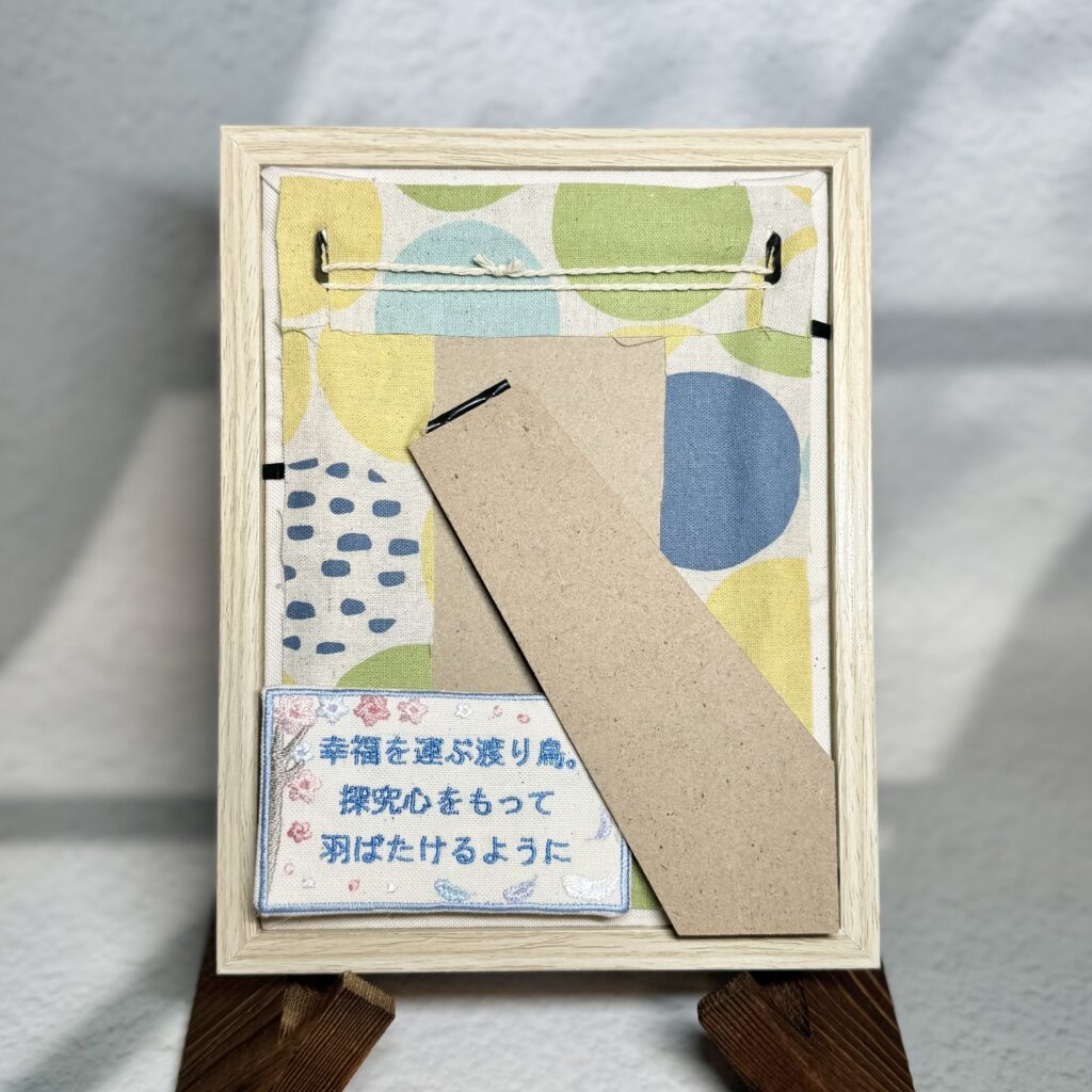 由来刺繡布《羽と桜》 2026.01.112026.01.14 鴻樹くん素敵なオーダーありがとうございました♪ 目次 写真オーダー内容と、使用した糸色は? 写真 オーダー内容と、使用した糸色は? メニュー:由来刺繍布 布色:生成布 線の色:水色285番キラキラ 文字の色:水色019番キラキラ 羽:白.水色203番.紫315番キラキラ 桜:ピンク124番.079番.白キラキラ 発色を検索 ➔ color listタグから検索 ➔ タグ一覧