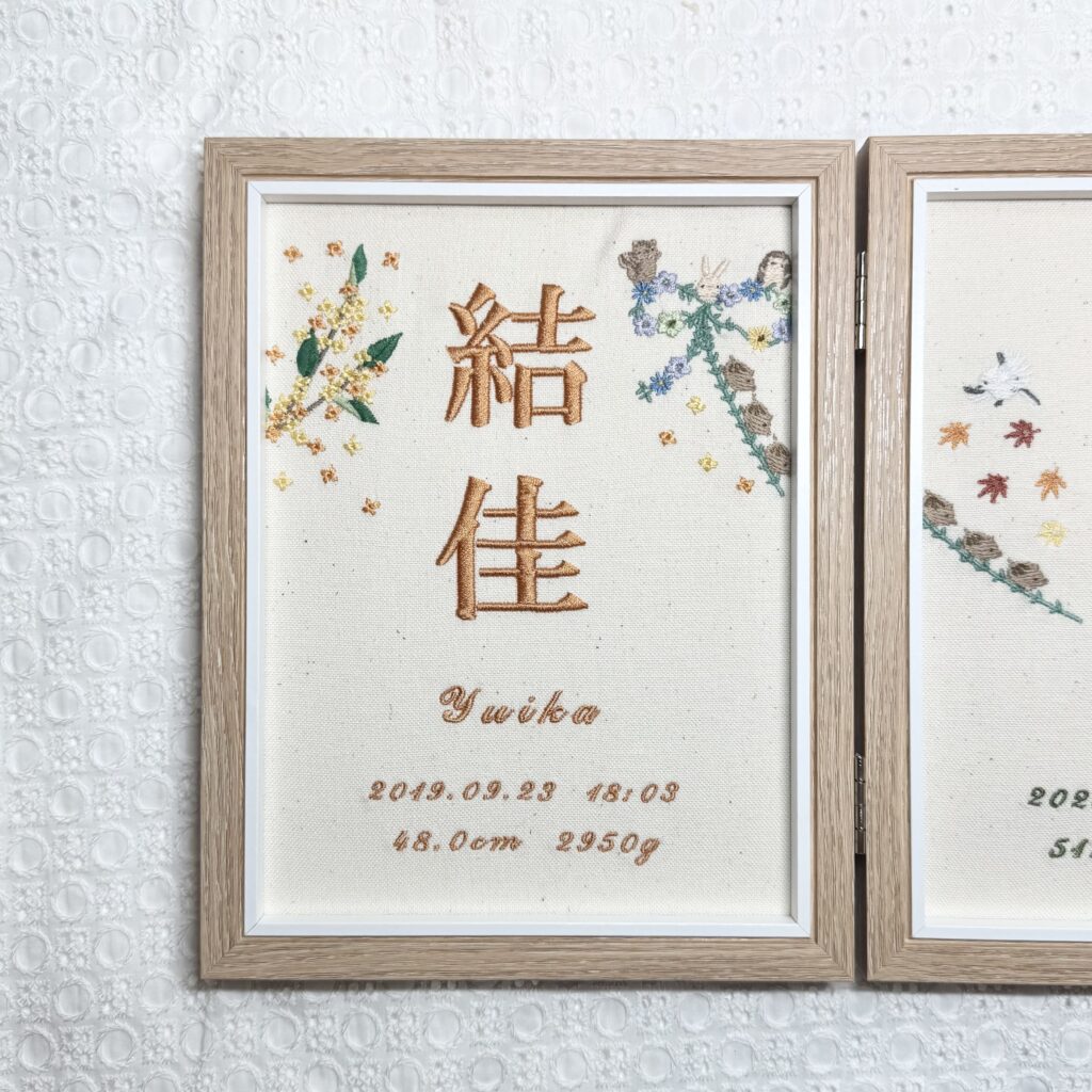 オリジナル命名書複雑デザイン《きょうだいで繋がる葉っぱのリボン》 2026.01.132026.01.14 結佳ちゃん、直翔くん素敵なオーダーありがとうございました♪ 写真 結佳ちゃん命名書 ➔ 詳細ページ 直翔くん命名書 ➔ 詳細ページ