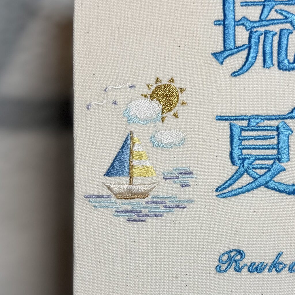 - デザイン:左下に海とヨット、右上にひまわりの花束