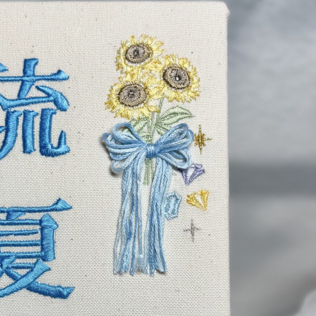 - 向日葵:黄色183番キラキラ、黄色010番キラキラ、黄色812番キラキラ、茶色150番キラキラ、ベージュ256番キラキラ