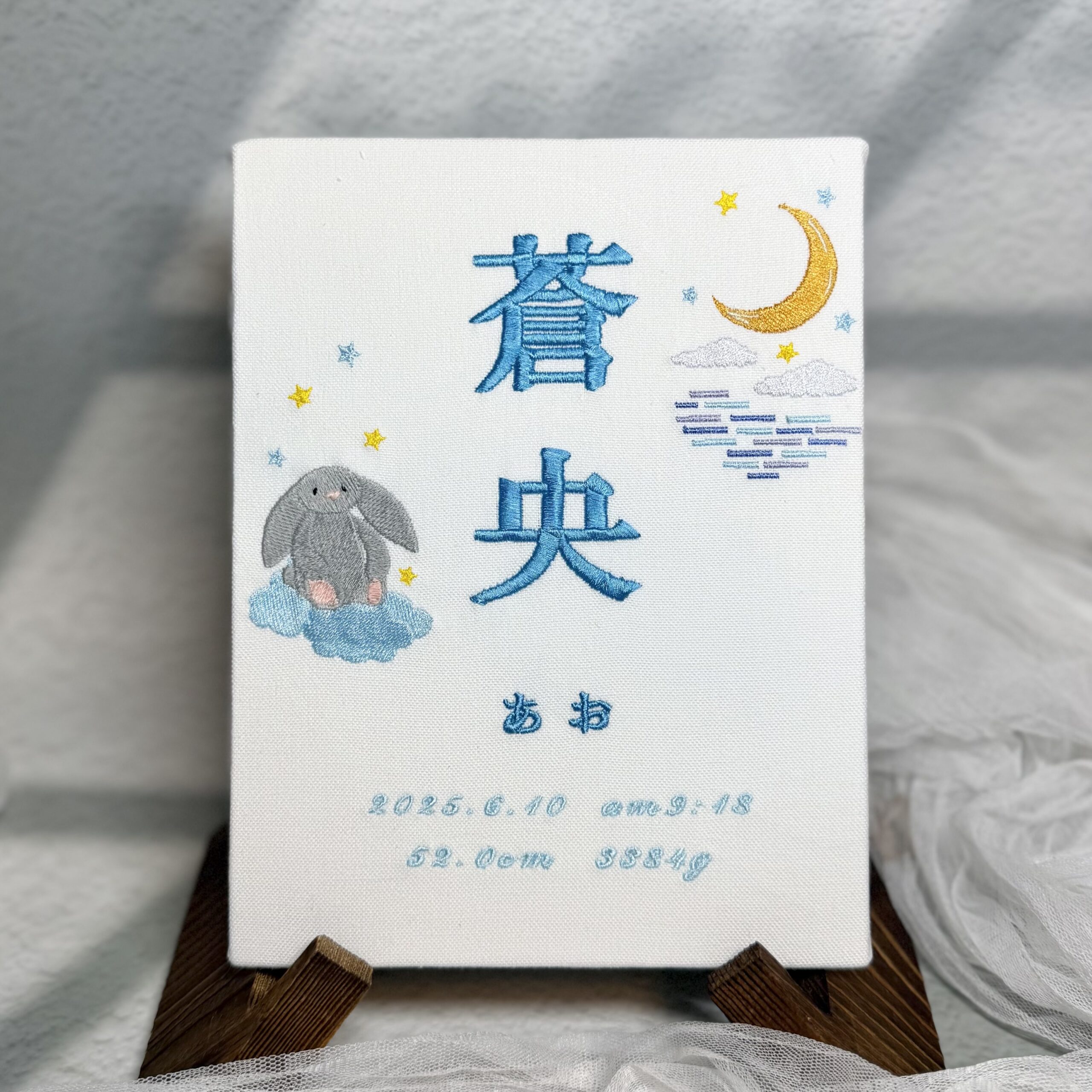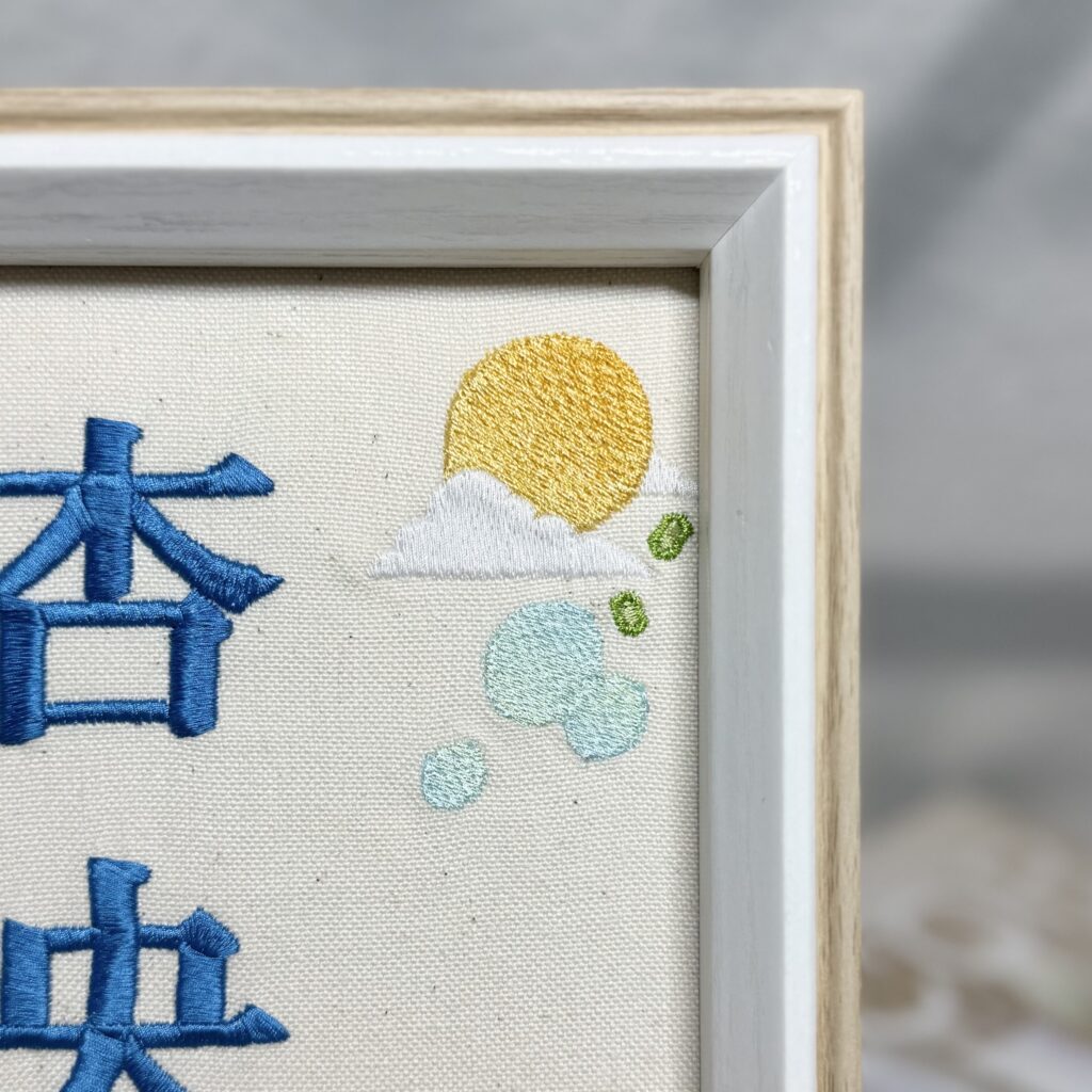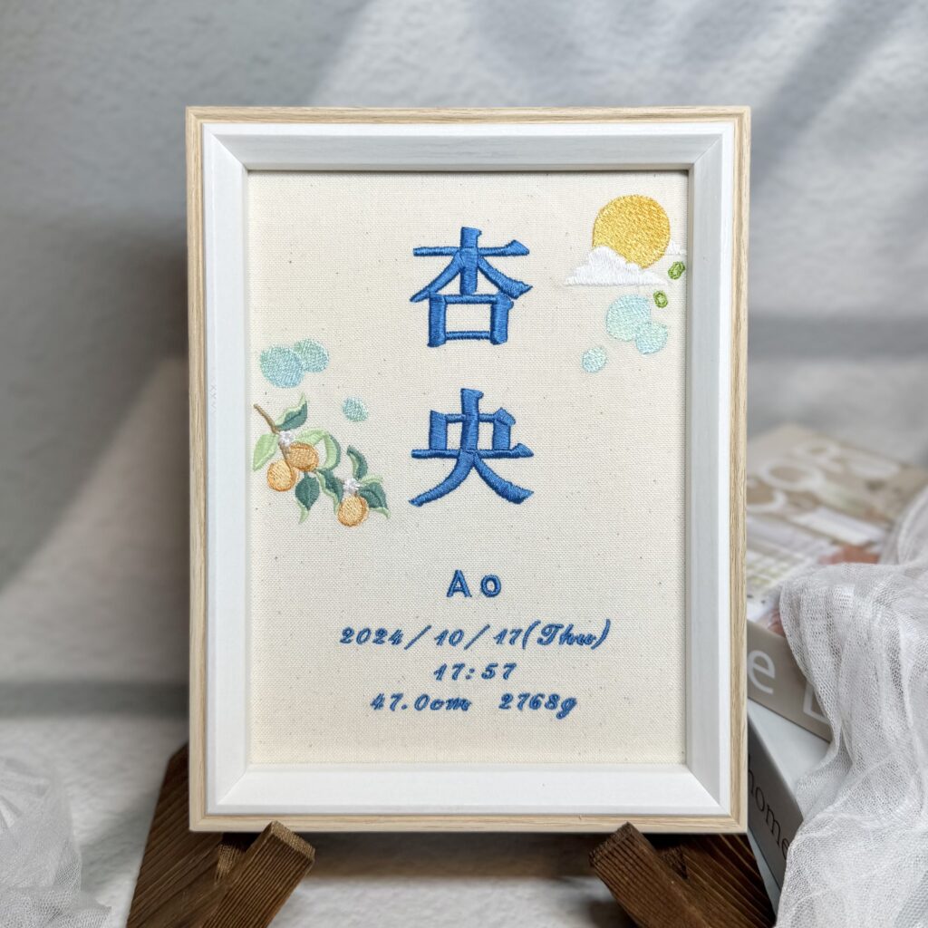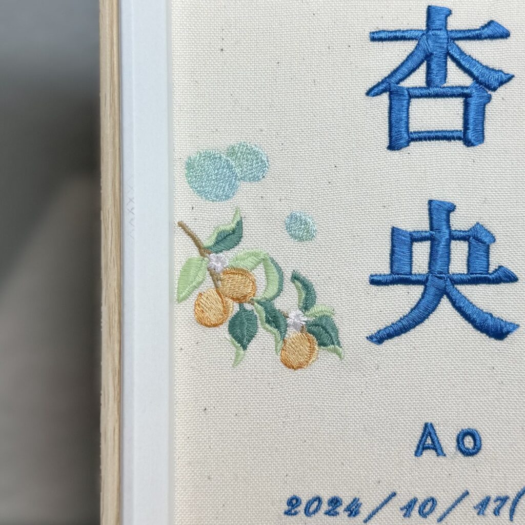 オリジナル命名書複雑デザイン《月とあんずとシャボン玉》 2026.01.21 杏央くん、素敵なオーダーありがとうございました♪ 目次 写真どんなオーダー内容?使用した糸色は? 写真 どんなオーダー内容? 使用した糸色は? 発色を検索 ➔ color listタグから検索 ➔ タグ一覧