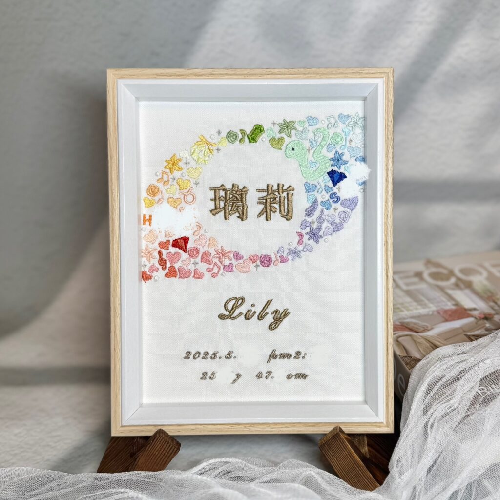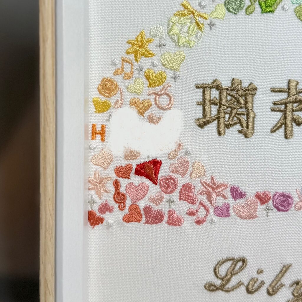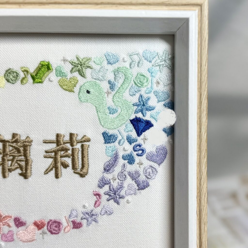 デザイン自由な命名書背面刺繡《可愛い絵柄でお名前を囲んで》