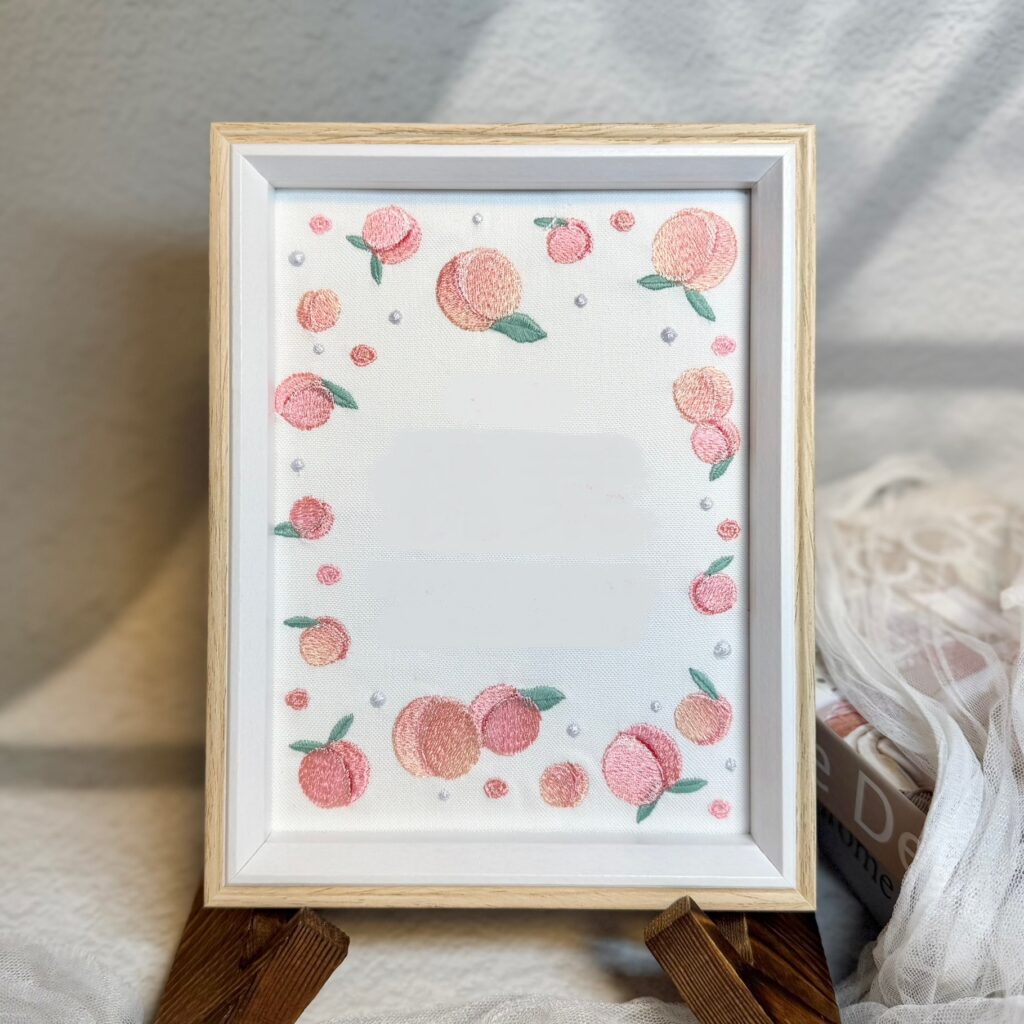 固定デザイン命名書《桃の祝福デザイン》 2026.01.222026.01.25 素敵なオーダーありがとうございました♪ 目次 写真どんなオーダー内容?糸色? 写真 どんなオーダー内容?糸色? メニュー:固定デザイン命名書 デザイン:桃の祝福デザイン 仕立て:額縁仕立て 布色:ホワイト布 発色を検索 ➔ color listタグから検索 ➔ タグ一覧