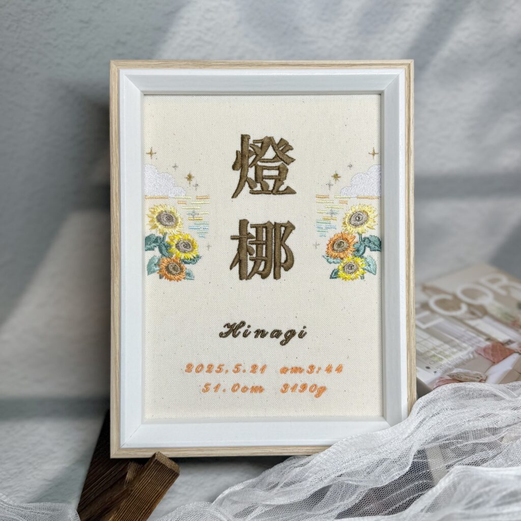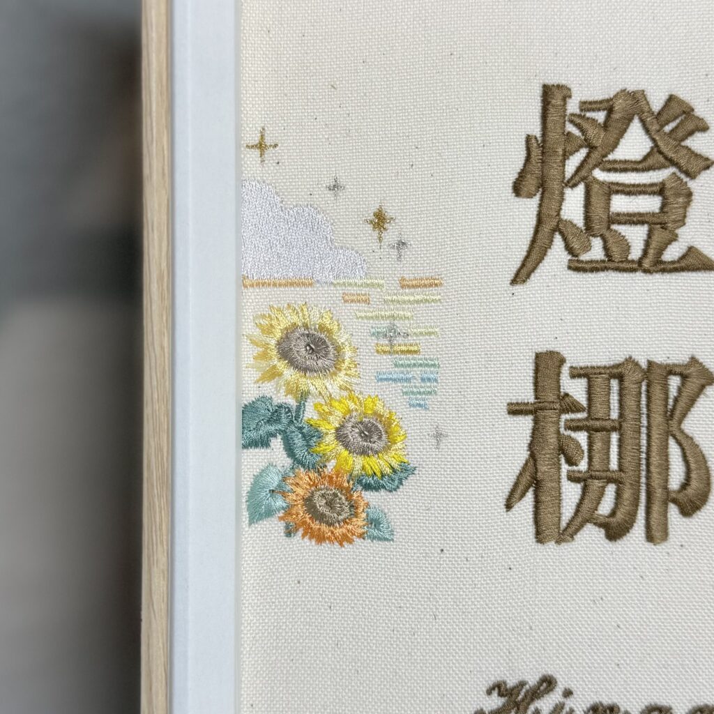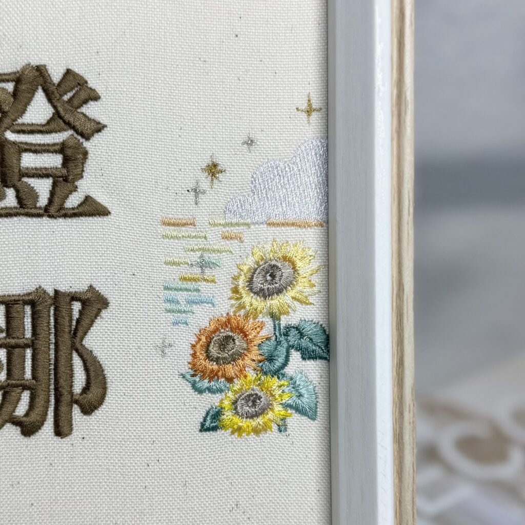 セミオーダー命名書《ひまわり 夕焼け》夕日刺繍 刺繍命名書 オーダー命名書 風景刺繍
