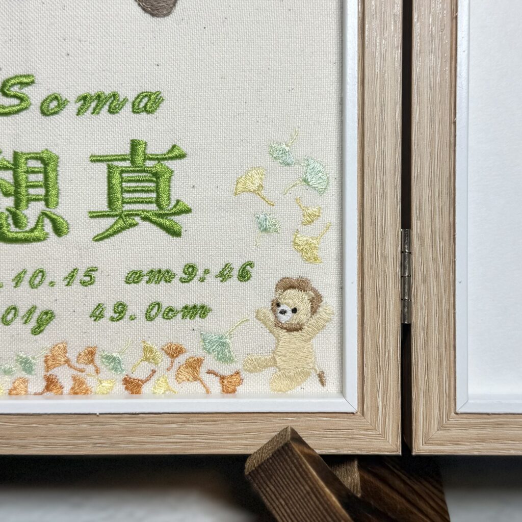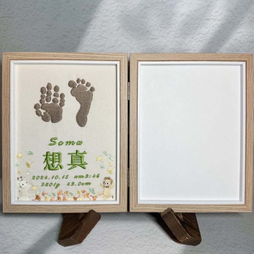 3D手足形命名書《ライオン・イチョウ・きりん》オーダーメイド 刺繡命名書 唯一無二 世界に一つの名入れボード 出産祝い
