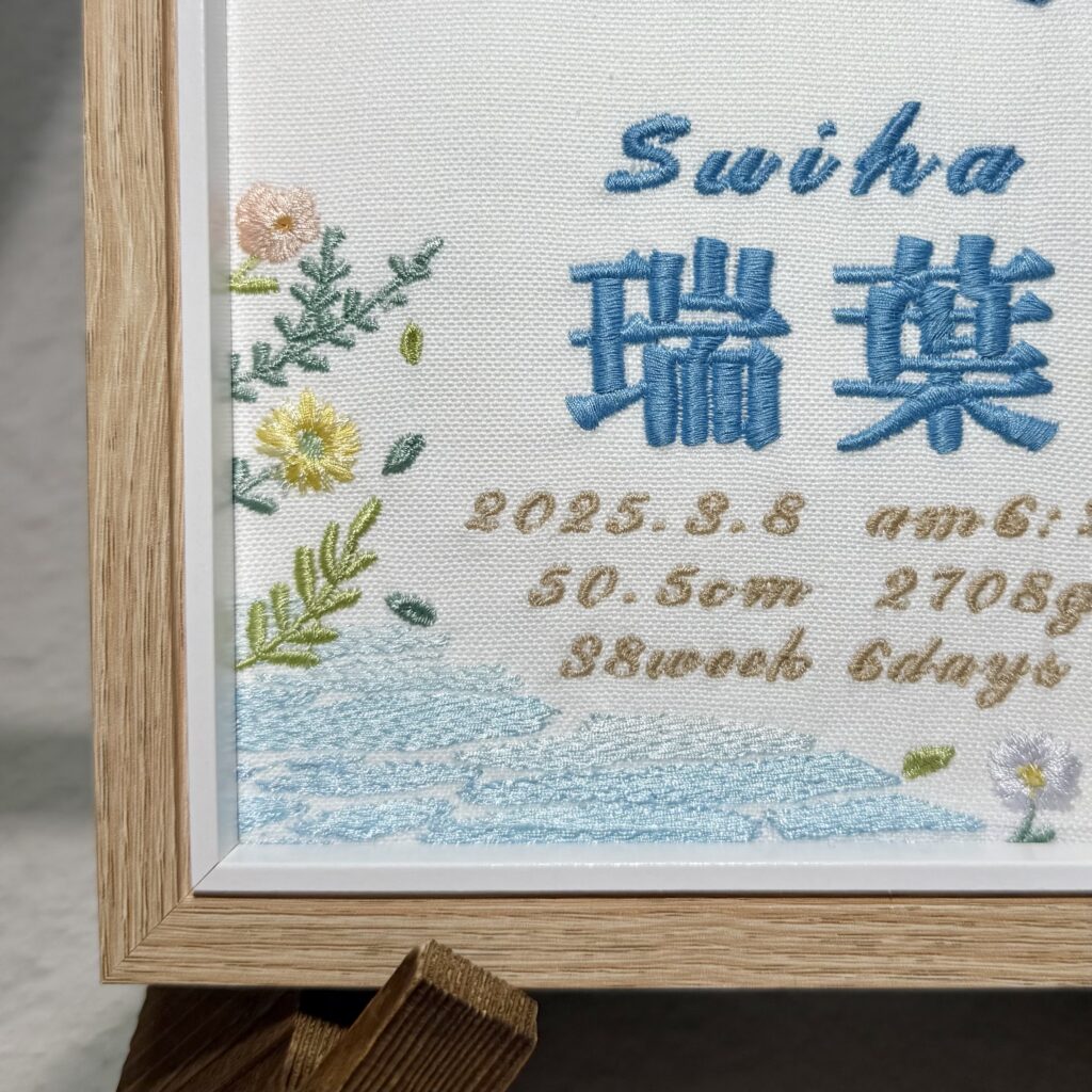 デザイン自由な命名書一面刺繡《水面・草花でおまかせ》