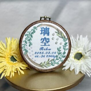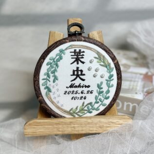 蒼央くん、素敵なオーダーありがとうございました♪写真どんなオーダー内容?糸色?メニュー:丸型命名書デザイン:オリーブ×ユーカリ布色:ホワイト布名前:青74番キラキラネームタグ ➔ 詳細ページ 発色を検索 ➔ color listタグから検索...