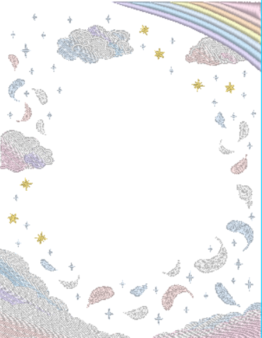 下部には虹色の雲。