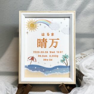 デザイン自由な命名書 -一面刺繡デザイン- デザイン自由な命名書一面刺繍《綺麗な海とパラソル》 晴万くん、素敵なオーダーありがとうございました♪写真オーダー内容と、使用した糸色は?メニュー:デザイン自由な命名書一面刺繍デザイン:上部に空と虹、下部に波とヨットとパラソル仕立て:額縁仕立て布色:ホワイト布使用した糸色は?名前:オレンジ12... 2026.01.17 デザイン自由な命名書 -一面刺繡デザイン-