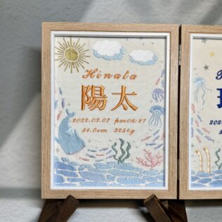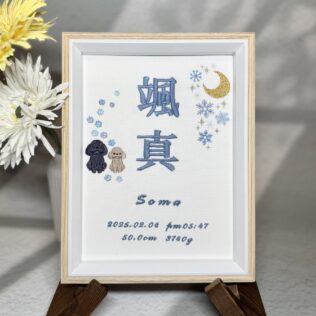 デザイン自由な命名書 -背面刺繍デザイン- デザイン自由な命名書背面刺繡《月と海デザインおまかせ》