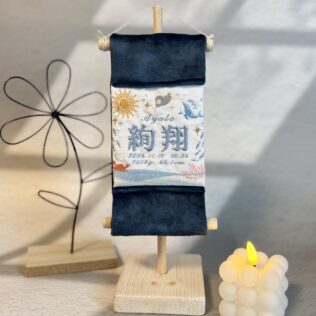 デザイン自由な命名書 -背面刺繍デザイン- デザイン自由な命名書背面刺繡《愛犬シュナウザーを入れた夏らしいデザイン》