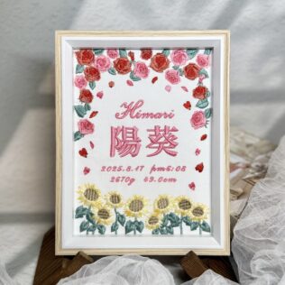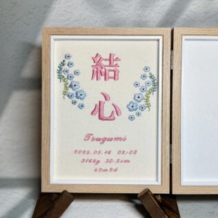 茉白ちゃん、素敵なオーダーありがとうございました♪写真どんなオーダー内容?メニュー:オリジナル命名書 複雑デザインデザイン:二十四節気の清明のイメージ仕立て:額縁仕立て布色:ホワイト布使用した糸色は?名前:ピンク085番キラキラ風の流れ:水...