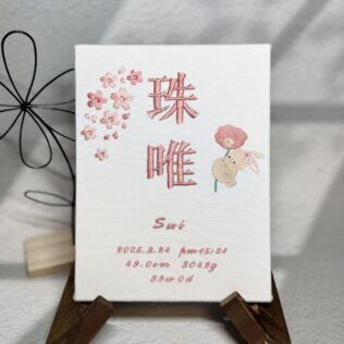 デザイン自由な命名書 -背面刺繍デザイン- デザイン自由な命名書背面刺繡《ユーカリとピクニックするくまの親子》