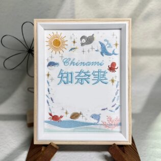 昼の海デザイン 固定デザイン命名書《昼の海デザイン》 知奈実ちゃん、素敵なオーダーありがとうございました♪写真どんなオーダー内容?メニュー:固定デザインボードタイプデザイン:昼の海(知奈実ちゃん)仕立て:額縁仕立て布色:ホワイト布使用した糸色は?名前:水色017番キラキラ発色を検索 ➔ col... 2026.01.09 昼の海デザイン
