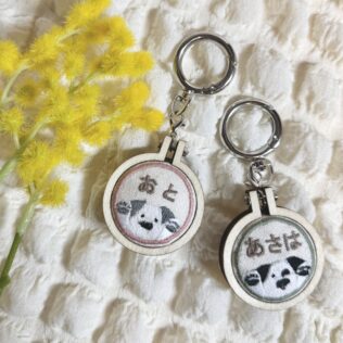 素敵なオーダーをありがとうございました♪写真オーダー内容と、使用した糸色は?おとデザイン: いぬ (イラスト風)布の色:生成名前の色:ベージュ112番マット線の色:ピンク218番マット犬:白マット、グレー284番マットあさはデザイン:犬 (...